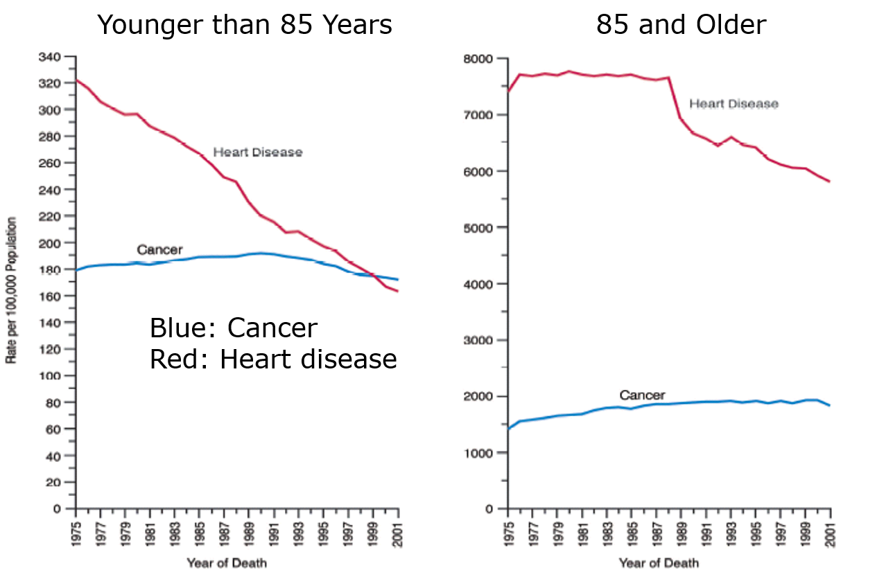 this is because there has been a reduction in exposure - eg in smoking = plateau in lung cancer