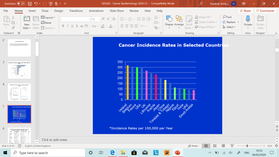 describe the international variation in different types of cancer’s incidence - 2002 *