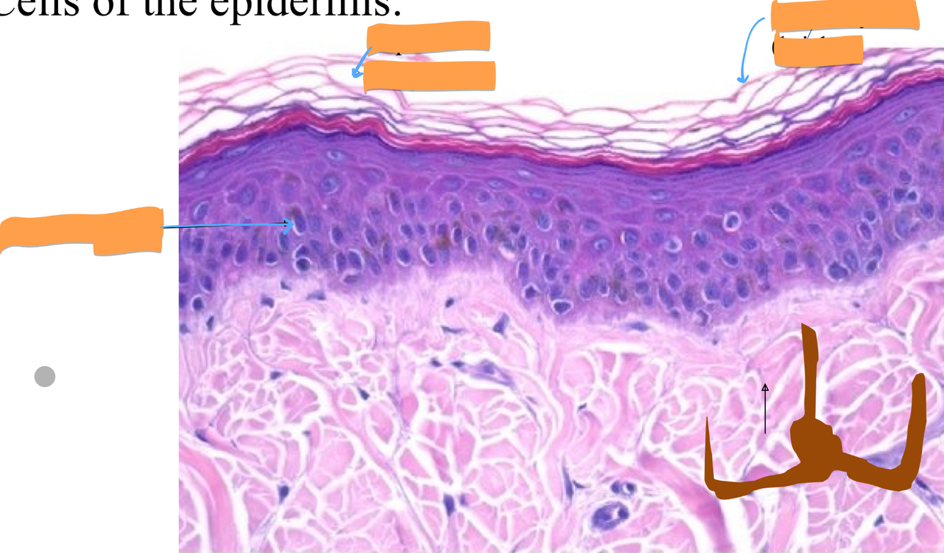 melanocytes, merkel cells, langerhans cells, keratinocytes, corneocytes