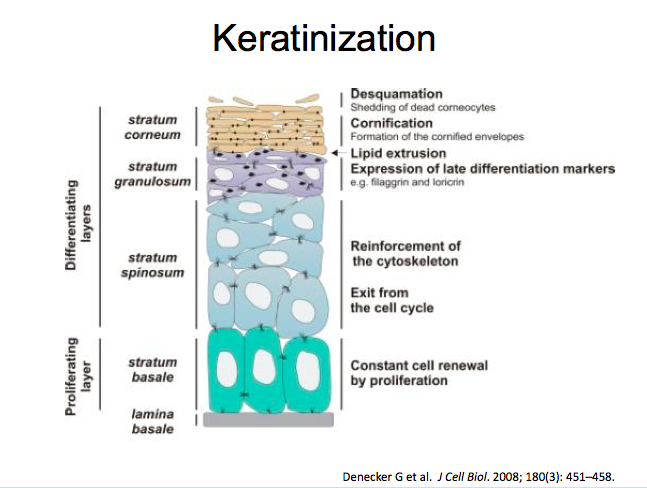 Desmosomes connecting the keratinocyte! In the spinous layer!