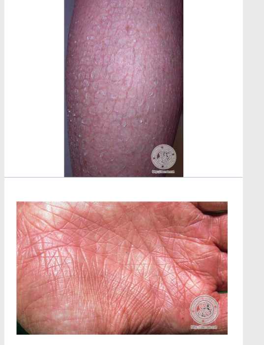 Features: “fish scales” especially on shins, dry skin, hyperlinear palms
