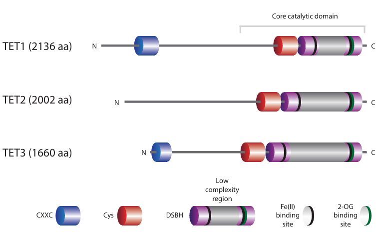 A family of epigenetic regulators which oxygenate 5-methyl-cytosine (5mC) to 5-hydroxymethyl-cytosine (5hmC). It is capable of further iterative oxidation to 5-formyl-cytosine (5fC) and 5-carboxyl-cytosine (5caC) as well.