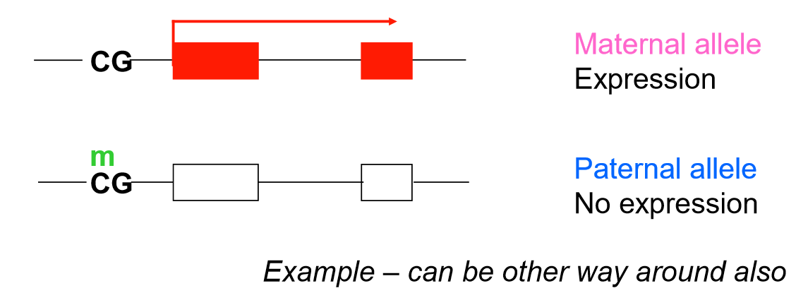 NB: On maternal chromosome, gene for Prader Wili normally imprinted (silenced) and Angelman gene active.