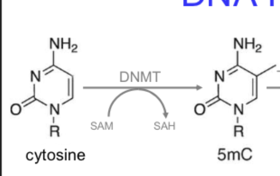 chemical modificaytion of DNA –> CH3 added to cytosines