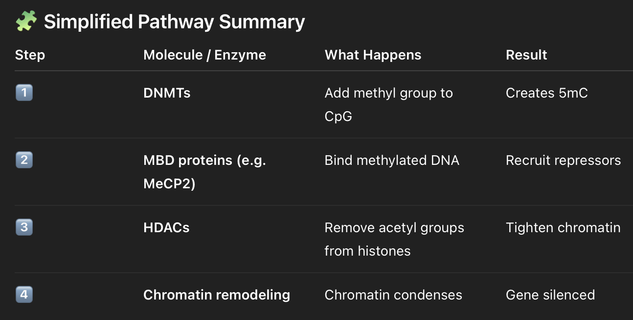 methyl DNA recruit MBD proteins –> more HDACs –> further compact