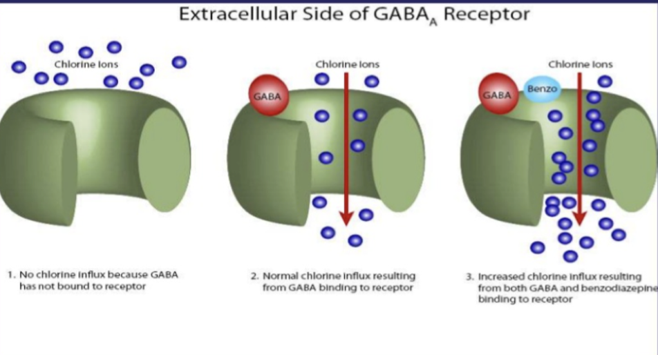 The end result, is that the diazepam binds and increases the effectiveness of GABA activation of this receptor (it doesn’t activate the receptor itself)
