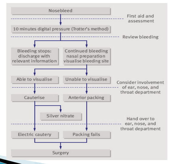 If bleeding from nose does not stop after 10-15 minites of continuous pressure what should you consider ?