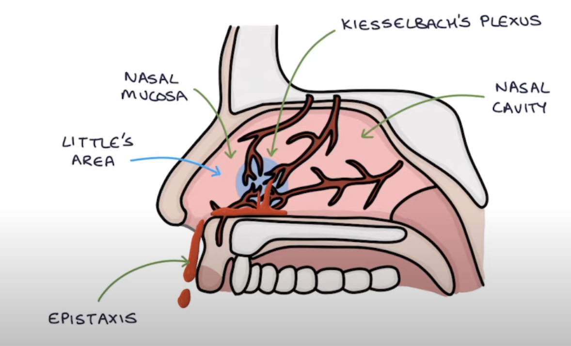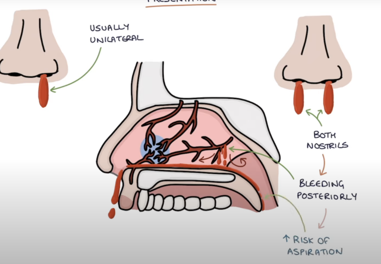 Patients should tilt the head forwards so not to force blood into throat and increase risk of aspiration
