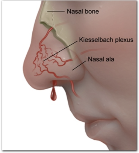 What part of the nose is most commonly known to bleed?