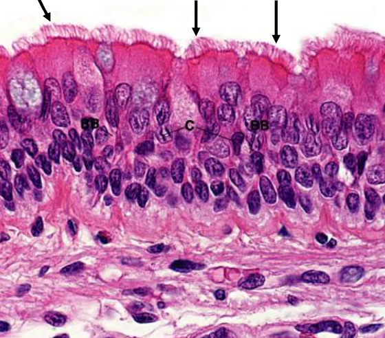 Cilios marcados con flechas (epitelio respiratorio)