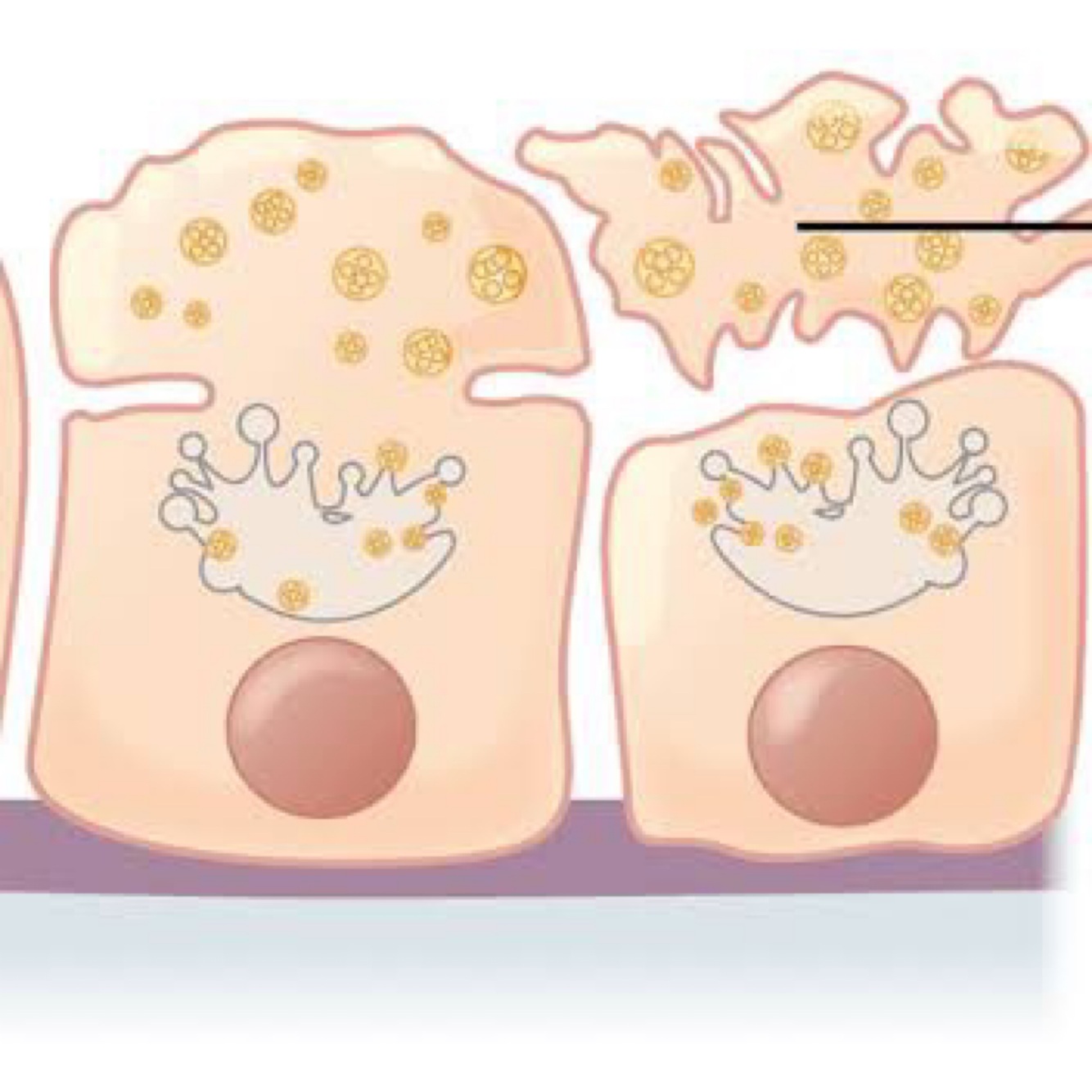 Se pierde la capa superficial decitoplasma de la célula. Mama lactante
