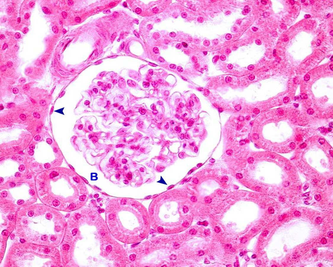 Vemos epitelio plano simple en la capsula de Bowman