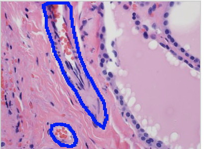 In this image, identify the structure that brings nutrients and oxygen to both the epithelial and connective tissues!