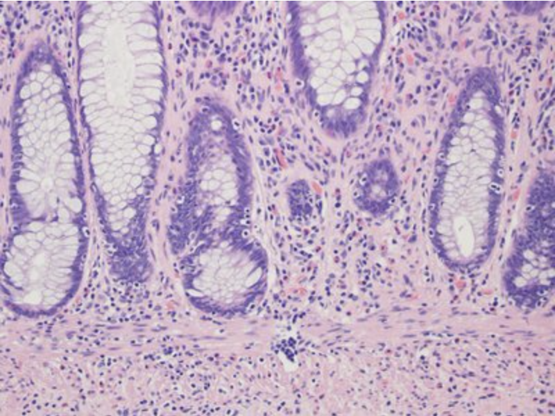 In this image, identify the layer of cells that are involved in renewal of mature epithelial cells!