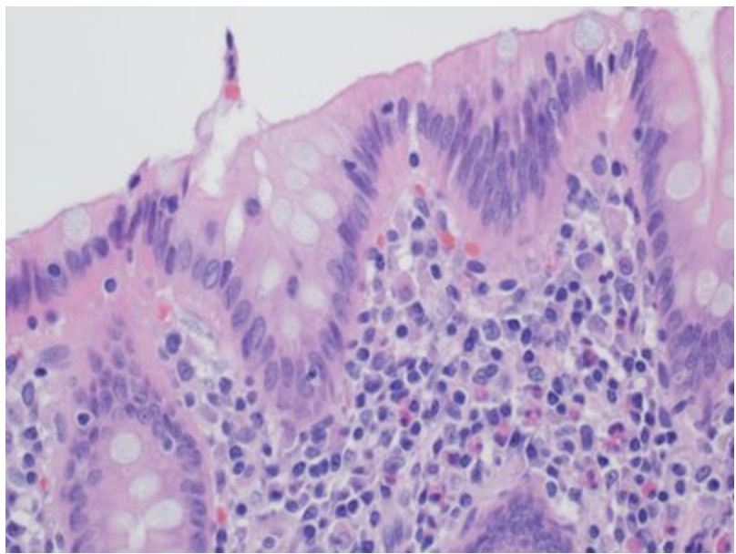 In this image, identify the columnar epithelium.