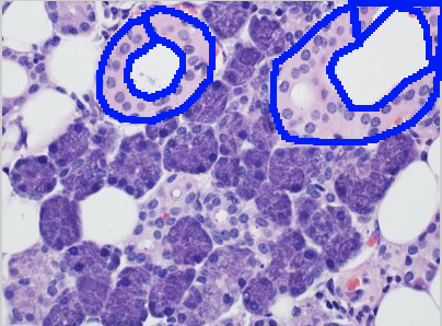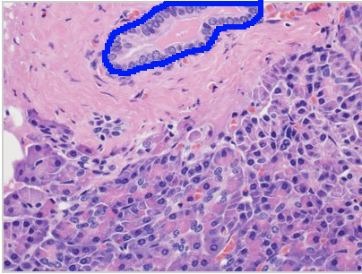 In this image, identify the duct portion fo the exocrine gland!