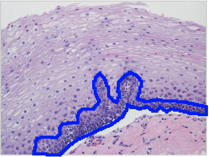 Epithelial tissues are relatively labile structures whose cells are renewed continuously by mitotic activity and stem cell populations. The rate of renewal varies widely; it can be fast in tissues such as the intestinal epithelium, which is replaced every week. In stratified epithelial tissue such this squamous epithelium of the esophagus, stem cells and mitosis occur only within the basal layer in conact with the basal lamina.