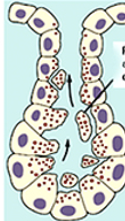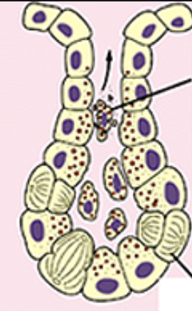 What gland exhibits the following?