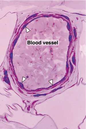 Arrow points to blood vessels