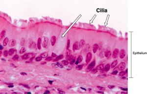 Location: lining of trachea, bronchi, nasal cavity