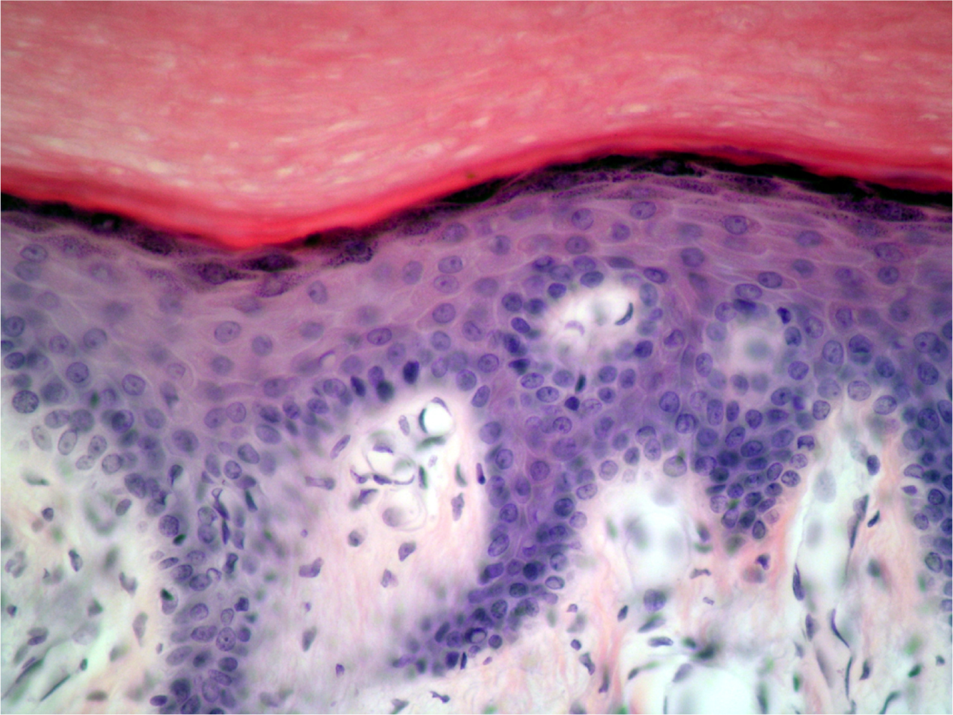 Pink = keratinized layer