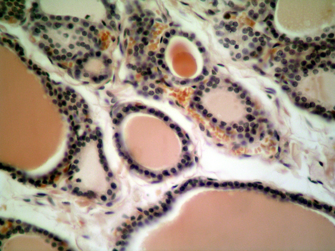 Simple cuboidal epithelium surrounding follices from the thyroid.