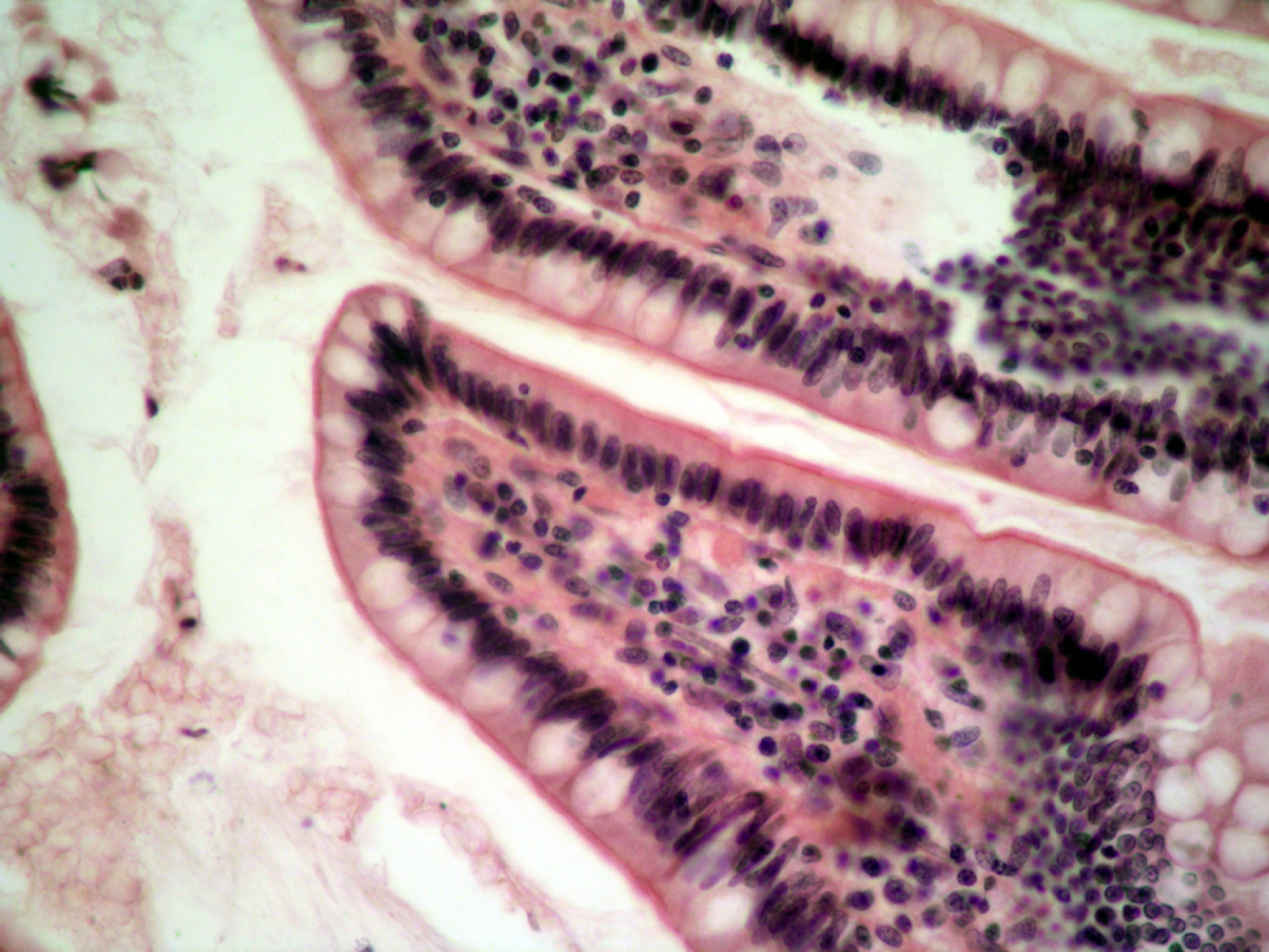 Simple columnar epithelium lining the villi