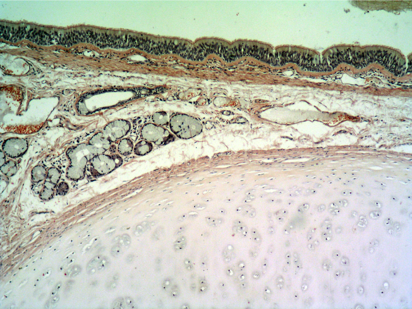 Connective tissue with glands and rings made of hyaline cartilage