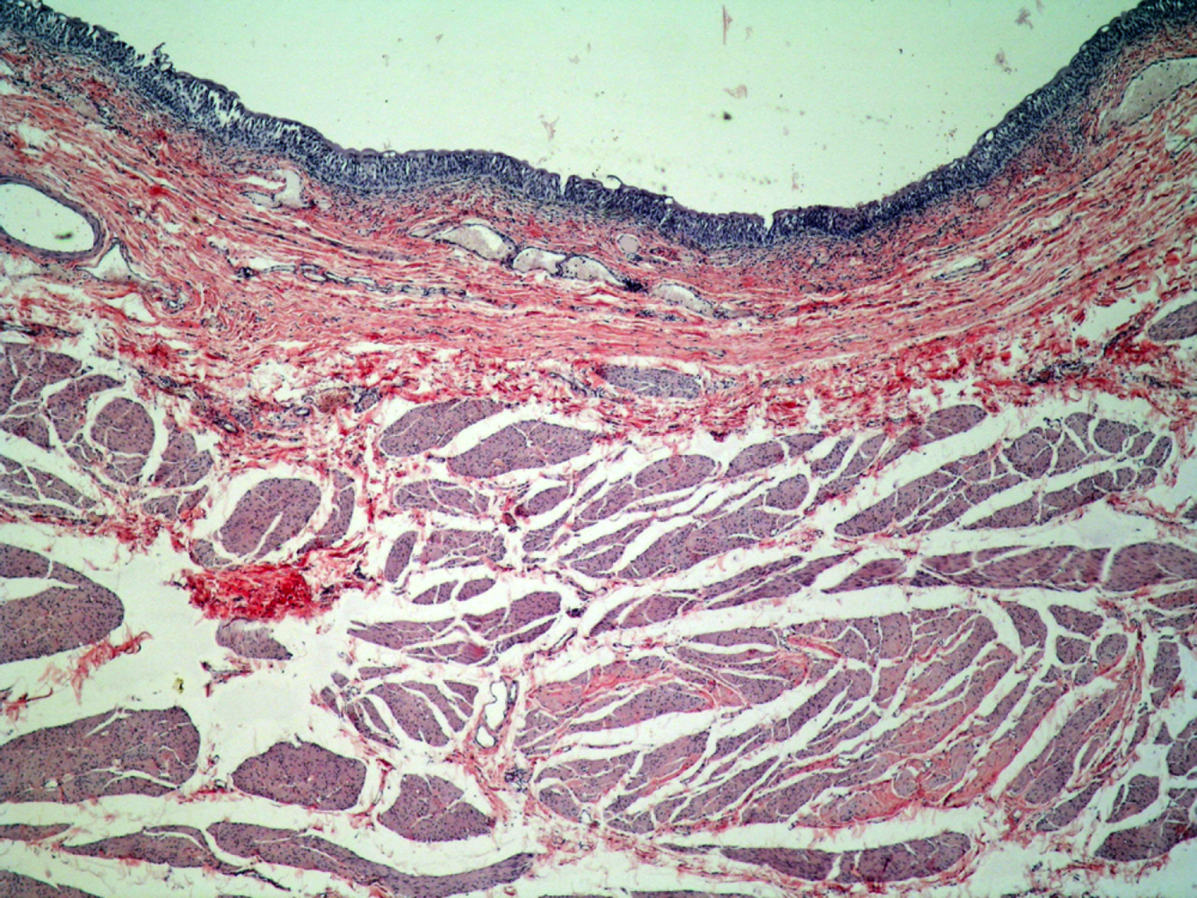 Thick basement membrane (pink)