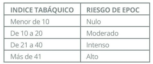 riesgo de epoc de acuerdo al indice tabaquico