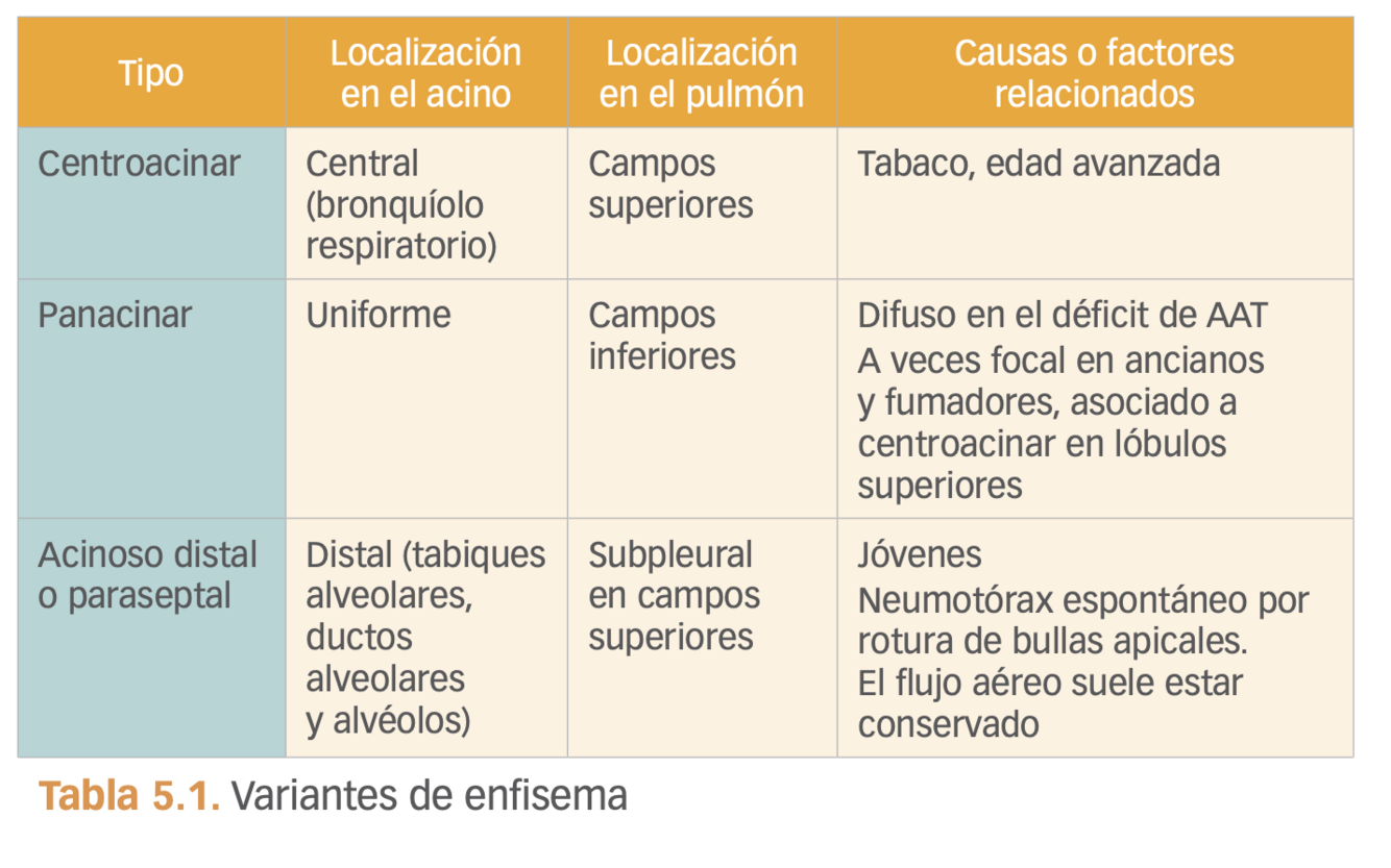 consiste en la dilatación del acino (vía aérea distal a un bron- quíolo terminal) y destrucción de la pared alveolar