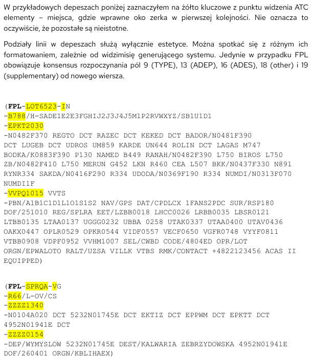 Plan lotu IFR – chronologia typowych depesz