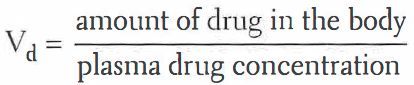 What is the equation for the volume of distribution (Vd)?