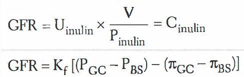 What are the equations for golmerular filtration rate (GFR)?