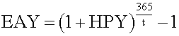 rMM = [(1 + EAY)t/365 - 1] x (360/t)