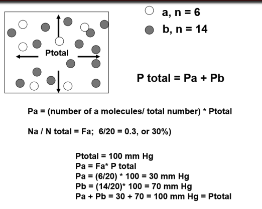 Find the partial pressures of gases a and b given that the Ptotal is 100 mm Hg; a, n=6 and b, n=14.