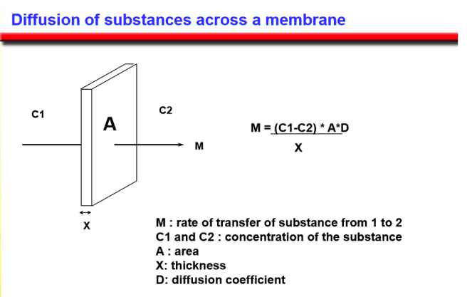 What is the equation for the diffusion of a substance across a membrane?