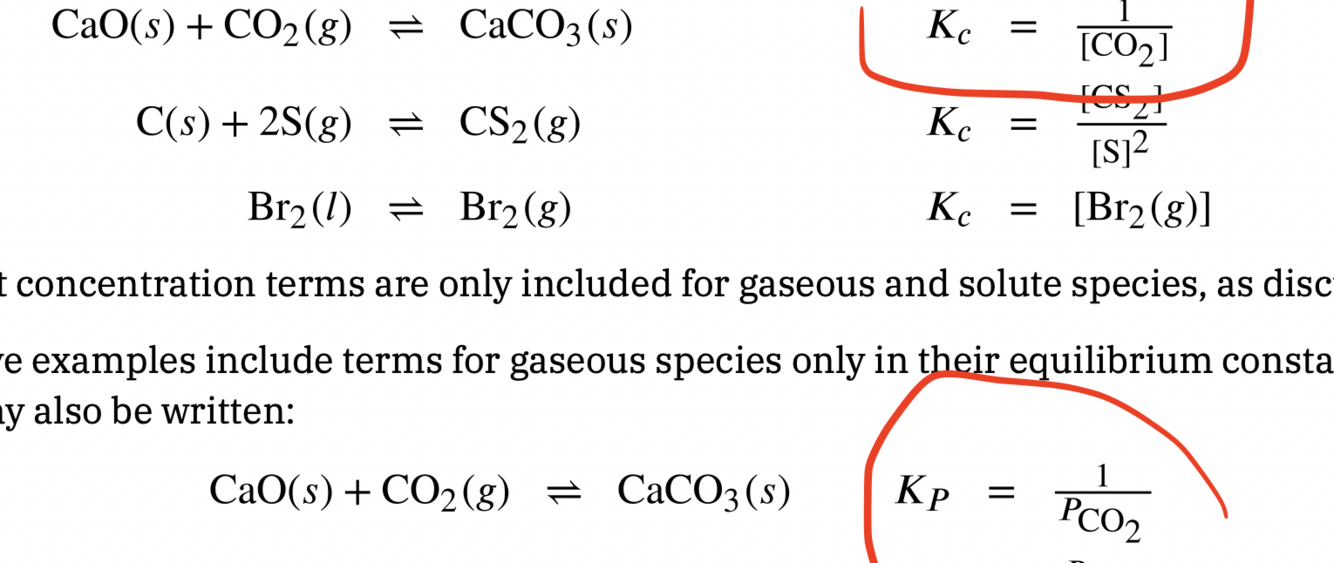 so what does an equilibrium reaction not include? write me the reaction kc/kp for this question then: