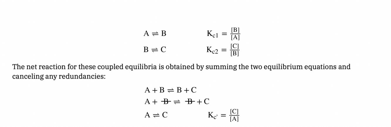 coupled equilibria involve two or more separate chemical reactions that share one or more reactants or products.