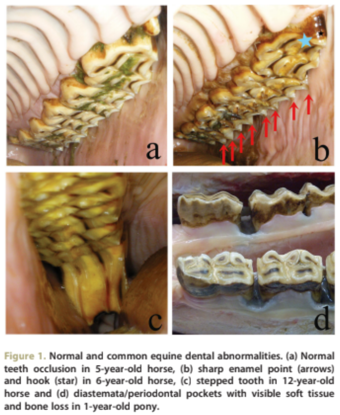 According to Chinkangsadarn T, Wilson GJ, Greer RM, Pollitt CC, Bird PS. Aust Vet J 2015. “An abattoir survey of equine dental abnormalities in Queensland, Australia”.
