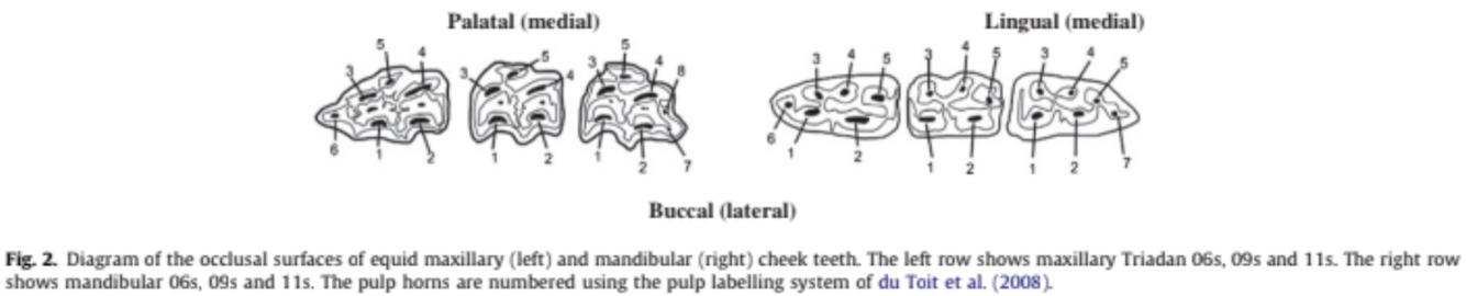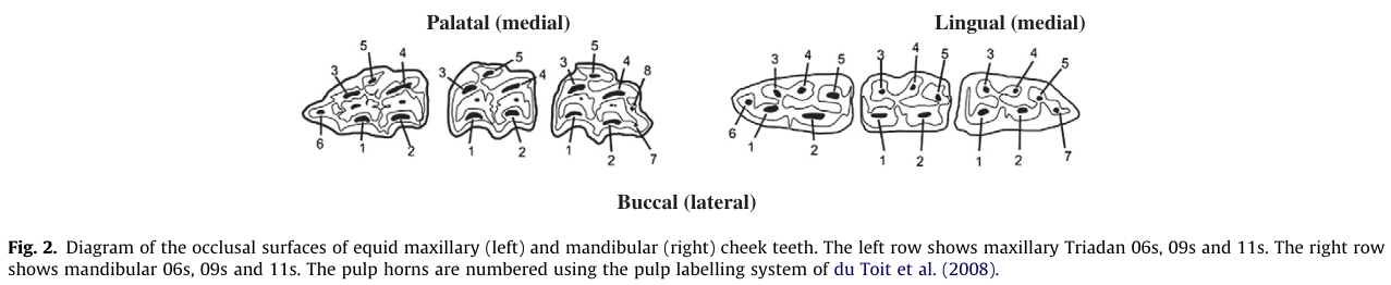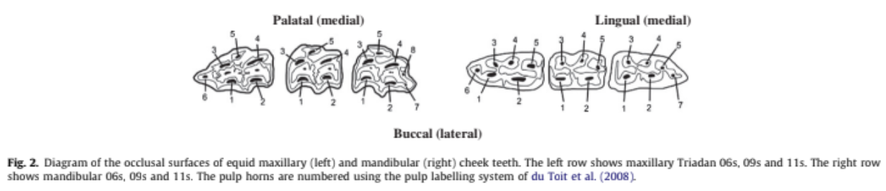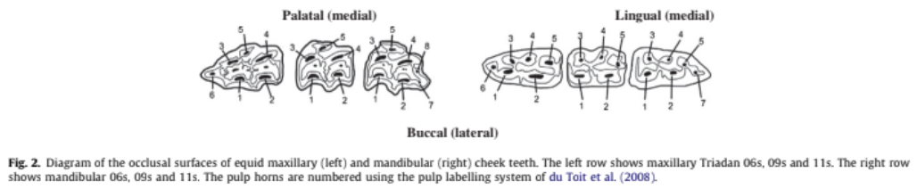 Marshall R, Shaw DJ, Dixon PM. “A study of sub-occlusal secondary dentine thickness in overgrown equine cheek teeth”. The Veterinary Journal. 2012;193(1):53-57.