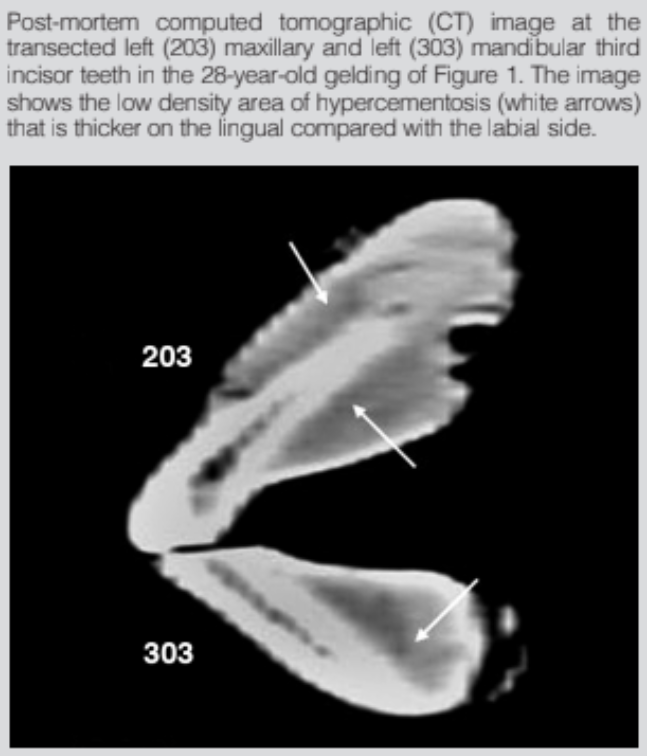 According to Jens Arnbjerg. Generalized Hypercementosis in Geriatric Horses