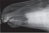 d. diastemata and periodontal pockets with visible soft tissue and bone loss