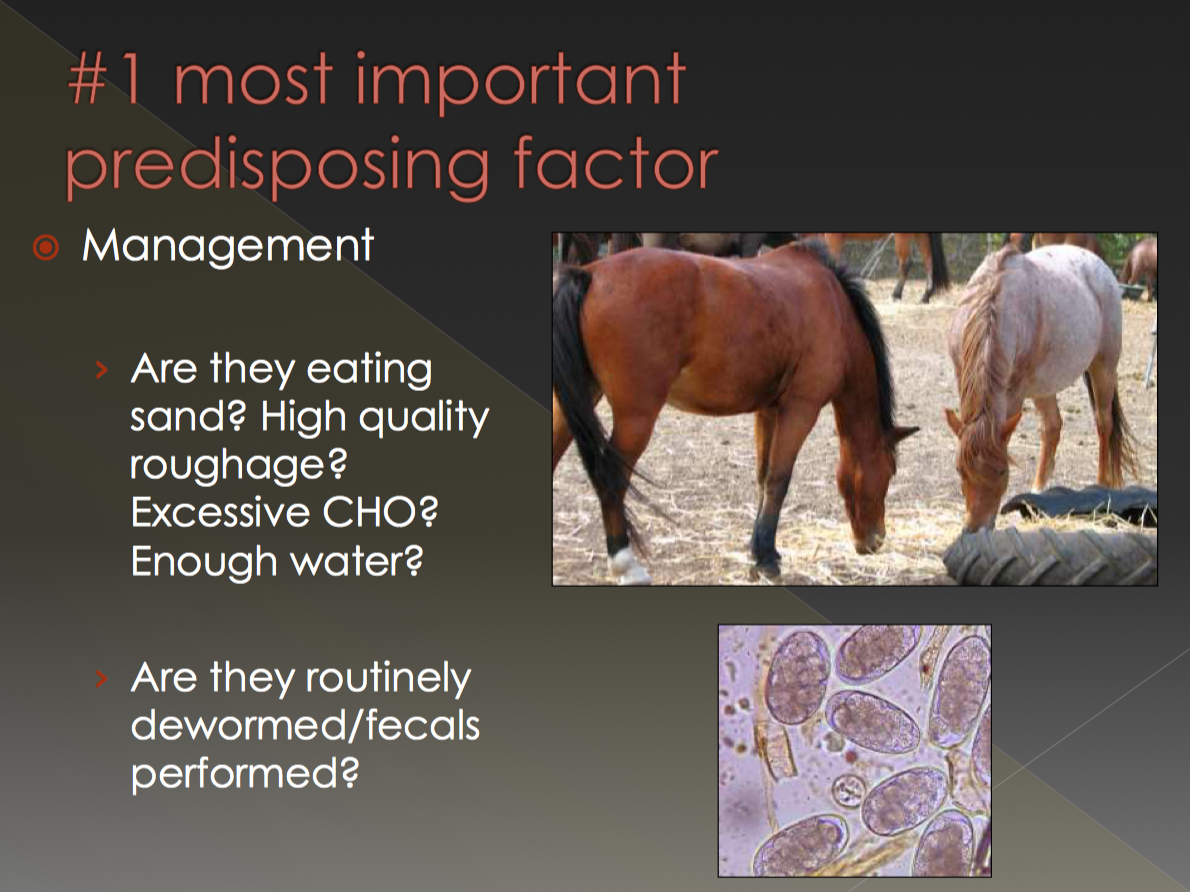 What is the #1 predisposing factor for colic in horses?