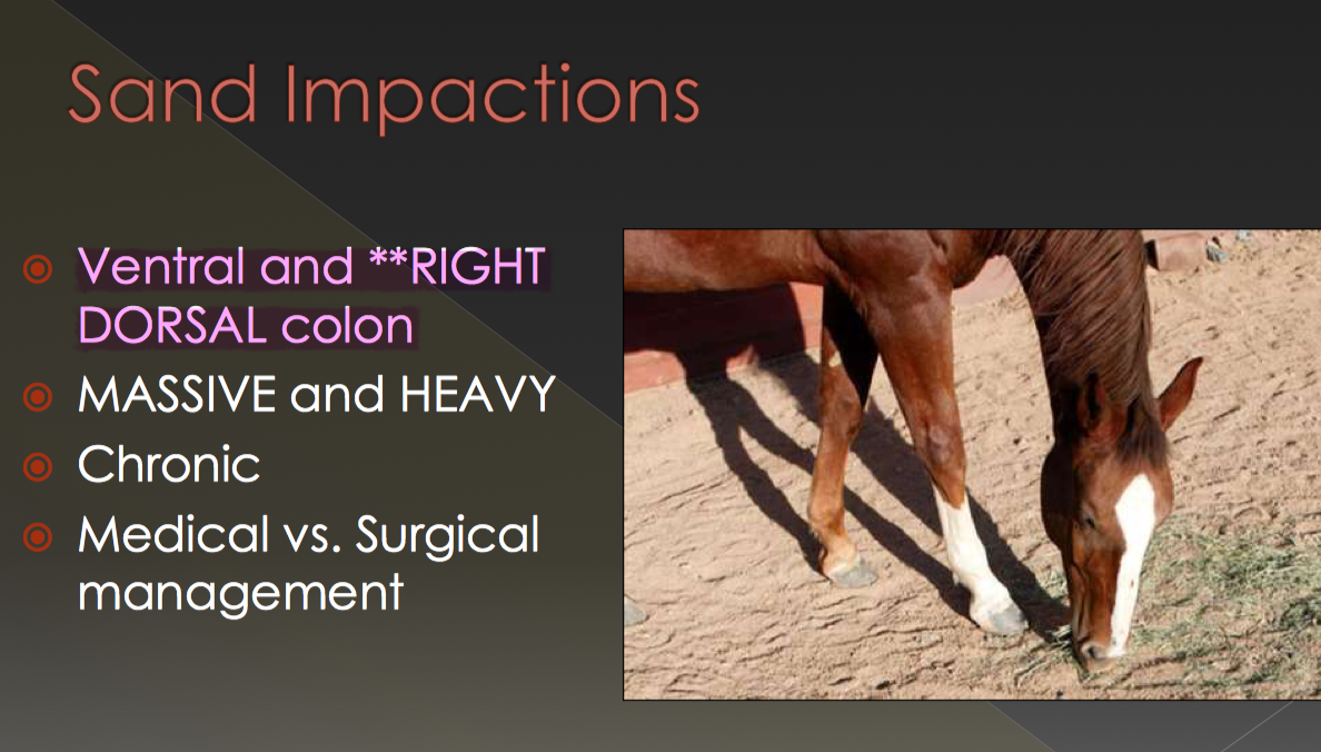 Where are sand impactions most commonly observed in horses?