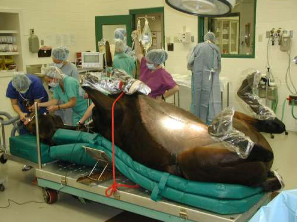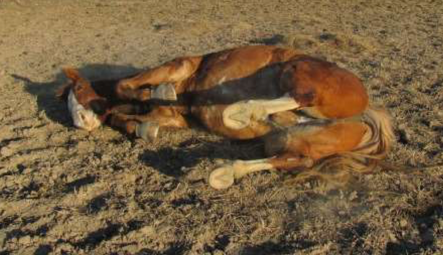 An owner found her 8 year old Warmblood mare violently colicky. The mare has a foal and the owner is concerned for the foal’s safety. The mare foaled 8 weeks ago and the foal is doing great (this is her 3rd foal). Current on vaccines and deworming. On spring pasture. The owner gave 10 mL Banamine PO prior to calling.