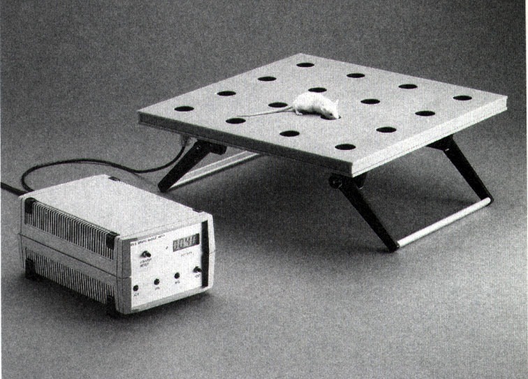 Measures drug effects on exploratory behavior in mice. Infrared detector in each hole records mouse probing behavior.