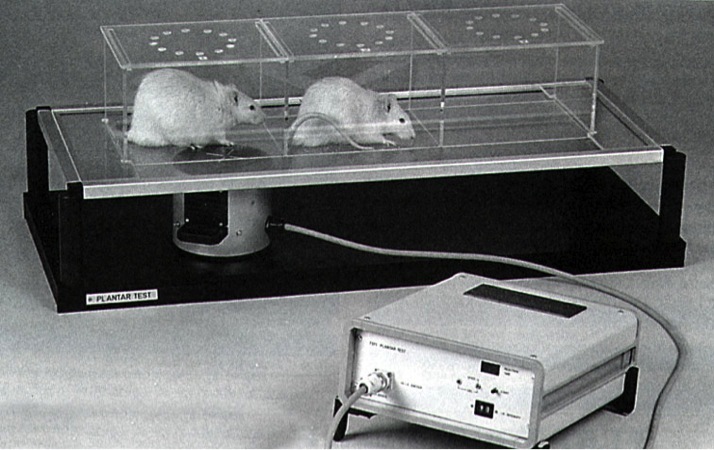 Measures paw sensitivity to heat stimulation similar to Hot Plate Test, however, animal is unrestrained and heat is applied to bottom of single foot after animal is at rest. Repeated testing does not result in sensitization.