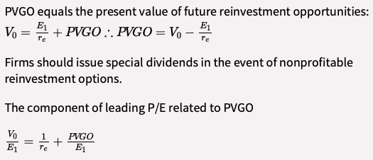 Calculate and interpret the present value of growth opportunities (PVGO) and the component of the leading price-to-earnings ratio (P/E) related to PVGO.