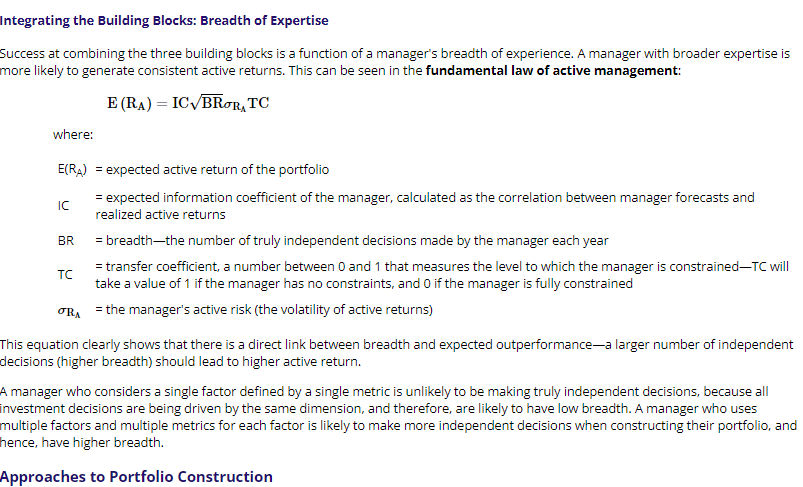 IC = measure of predictive power of a quant model –> if there’s a strong relationship between factor exposure and performance the factor has high predictive power